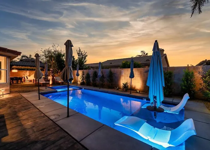 Offering a Jacuzzi for a relaxing experience, The Crescendo Stylish Modern Pool Home is located 4.9 km from Fantasy Springs Resort Casino. The 2-bedroom villa features opportunities for table tennis and pool in the area, 2.1 km from Indian Palms Country Club.